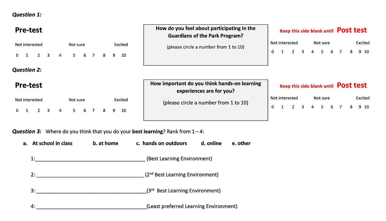 The GoP reflects GSP’s broader commitment to using public parklands as places of growth, learning, and connection for those excluded by conventional educational settings. During the program, students learn and practice hands-on land management practices, including Indigenous land management techniques and bush survival skills, whilst restoring 3000 sqm of bushland and planting 4620 native trees [39]. After the completion of the course, students were invited to return as mentors for future sessions. The program is multidimensional in its aims—focusing on supporting disadvantage youth to reengage with their education, strengthen students’ relationship to the environment, and regenerating the environment itself. Specifically, the program was designed to enhance students’ sense of place and belonging, improve levels of self-esteem and increased students’ overall wellbeing. Environmentally, the program also aims to restore threatened habitat in Western Sydney Parklands and increase the park’s resistance to climate change, however, reporting on the environmental outcomes is beyond the scope of this paper.