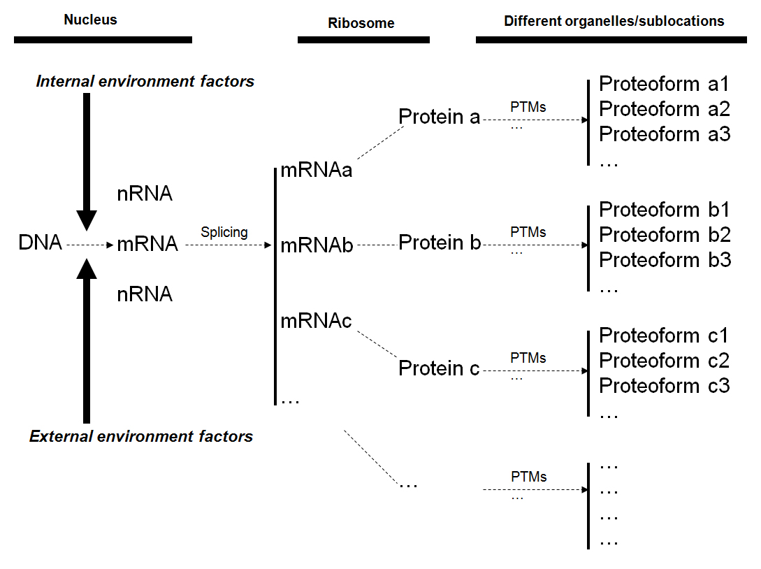 Fig. 4 Brief model of the forming process of proteoforms in a cell.