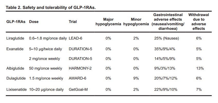 Table 1. Major efficacy results of trials with GLP-1RAs.