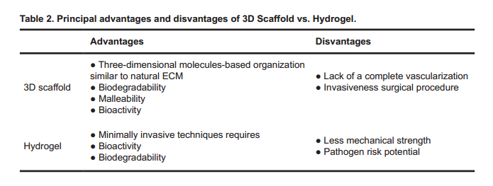 4.4 HydrogelsOne of the principal aim of cardiac regeneration is to repair ischemic tissues, stimulating the formation of new blood vessels, through the delivery of angiogenic growth factors, stem cells or expansion of pre-existing cells. Despite the encouraging results previously analyzed, one of the problem associated with the use of 3D patch for cardiac repair is the lack of a complete vascularization able to affect the thickness of the scaffold and, as a consequence, cells viability [117]. Furthermore, the necessity to develop minimally invasive techniques requires the setting up of alternatives. In this optic, injectable hydrogels represent the most investigated biomaterials forms for both in vitro and in vivo cardiac tissue engineering (Table 2) [118,119]. Hydrogels can be defined as viscoelastic system, composed of a natural or synthetic extensive water-swollen polymeric network, that can be injected in liquid state and then able to form a solid gel in situ [120]. In 2004, Christman et al. investigated, for the first time, the effects of an injectable biopolymeric fibrin scaffold to deliver cells directly into the infarct wall of MI model rats [121]. Their rationale was that the direct injection in the infarcted myocardium of cells, in this case skeletal myoblasts, would increase cell transplant retention and survival within the infarct. Even if fibrin glue was not able to increase cells retention, the injection of this hydrogel was able to promote cells survival and blood supply to the ischemic myocardium leading to a reduction of infarct size and myocardial remodeling [121]. In addition, the same group demonstrated that an injectable porcine ventricular ECM-derived hydrogel was able to promote in vitro proliferation, survival and cardiogenic potential of embedded human Sca1+ CPCs population [122]. The subsequent injection of the hydrogel in an induced MI rat model resulted in a reduced cardiomyocyte apoptosis, cardiac hypertrophy and fibrosis. On the other side, the resulted increase in resident CPCs recruitment, in cardiac transcription factor expressions and in the neovascularization of the infarcted tissue, has led to an improvement in global cardiac functions and hemodynamics [123–125]. These results in accordance with the needed to provide increasingly effective therapeutic tools have triggered a still ongoing clinical trial (NCT02305602) that evaluates the safety and feasibility of the porcine myocardial dECM-derived hydrogel delivered, in a minimally-invasive procedure, via catheter to the damaged cardiac tissue in patients after myocardial infarction [125–127]. It has been deeply demonstrated that human cardiac dECM-derived hydrogels support in vitro proliferation and differentiation of pluripotent stem cells along the cardiomyocyte lineage in addition to a cytoprotective effect [128,129]. Nonetheless, the porcine dECM application is favoured than human one because of the rarity of collecting healthy human hearts, the significant patient-to-patient variability and, most of all, the aging-related alteration in ECM composition [27,130,131]. Either way, other clinical trials have been developed to investigate the in vivo therapeutic efficacy, safety and feasibility of other hydrogel compositions [126,132]. For example, the PRESERVATION-1 trial (NCT01226563) evaluated the safety and effectiveness of an alginate hydrogel, intracoronary injected, for the prevention of ventricular remodeling and congestive heart failure after MI [133,134]. Furthermore, despite the hydrogel composition, the suitable injection site represents another issue to be investigated. In a recent study by Garcia et al., it has been tested on a pig model of atrial fibrillation (AF) the efficacy of amiodarone, an effective lipophilic medication approved for rhythm control but with a significant systemic toxicity, encapsulated in a PEG-based hydrogel (50 mg amiodarone/5 mL gel) and injected directly on the atrial pericardium. They demonstrated that pericardium hydrogels can deliver therapeutics directly to the heart enabling a continued release of drug for several weeks and reducing off-target organ accumulations [135]. These results highlight the possibility to use pericardium as an alternative therapeutic site for treatment strategy for AF and other cardiovascular diseases. Interestingly, Zhang et al., aimed to test in vitro the efficacy of the pretreatment with pericardial fluid (PF) from rats with myocardial infarction (PFMI) on CSps and to assess, for the first time, the therapeutic in vivo effect on rat models of MI by administering these pretreated CSps, embedded in a commercial hydrogel, in the pericardial cavity [136]. in vitro experiments demonstrated that PFMI pretreatment enhanced CSps survival and their commitment in cardiac muscle cells. Interestingly, the in vivo pericardial application of hydrogel with functionally enhanced CSps demonstrated that these cells could differentiate in cardiac myocytes and, in a paracrine way, to improve cardiac function and myocytes survival, to stimulate angiogenesis into the infarcted myocardium and to reduce myocardial fibrosis [136].