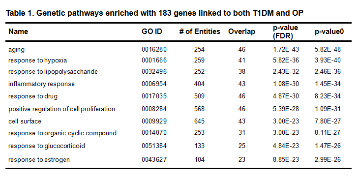 Table 1. Genetic pathways enriched with 183 genes linked to both T1DM and OP