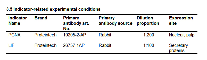 5) Primary antibody incubation: They were dropped in an appropriately-diluted primary antibody (PCNA, LIF), and kept overnight at 4°C. They were then washed three times in PBS for 5 min;