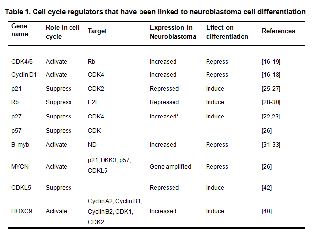 Table 1. Cell cycle regulators that have been linked to neuroblastoma cell differentiation