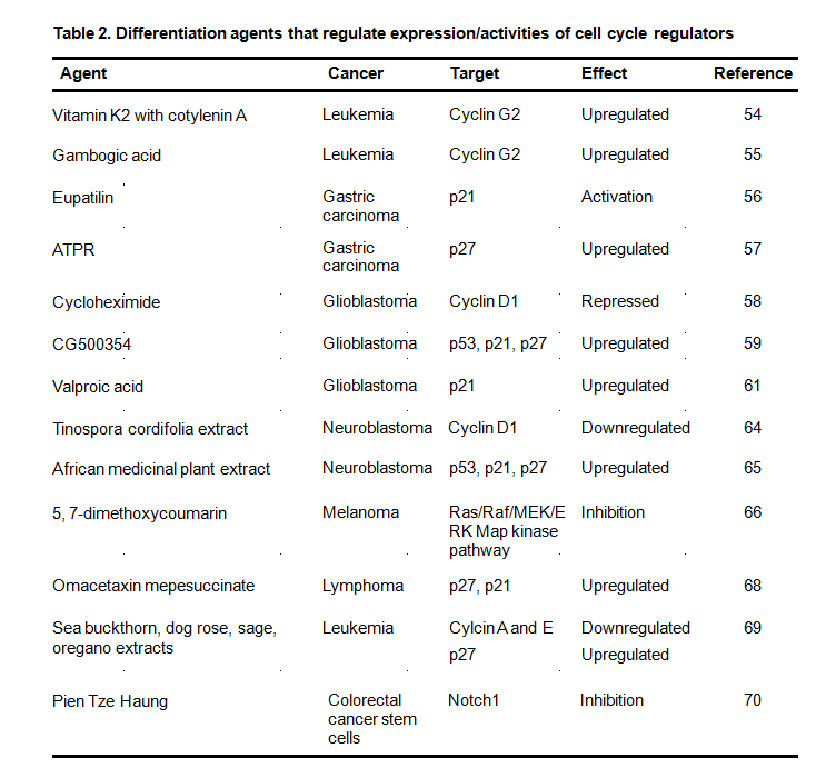 Table 2. Differentiation agents that regulate expression/activities of cell cycle regulators