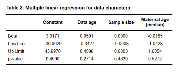 Table 3. Multiple linear regression for data characters